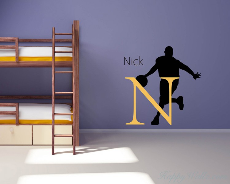 -A Basketball Man Decal, Your Name Decal and the Initial Letter