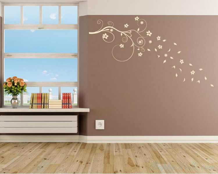 This wall decal is about beautiful floral wines with some lovely leaves.