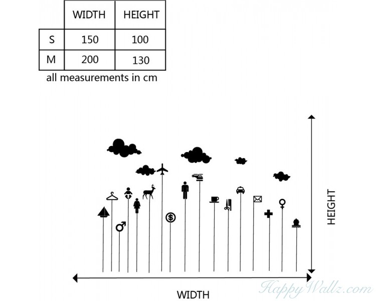 This wall decal is a kind of nursery decal which is in lovely cartoon style. There are some cartoon stuff under the clouds.