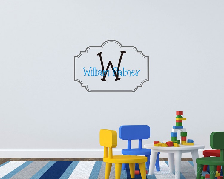 This wall decal is a customized name with the initial of your name in two colors. And around the name, there is a lovely name frame.