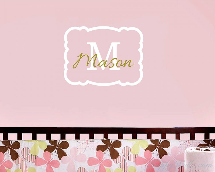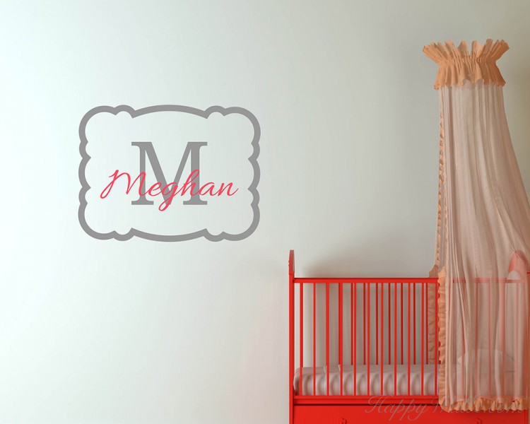 This wall decal is a customized name with the initial of your name in two colors. And around the name, there is a lovely name frame.