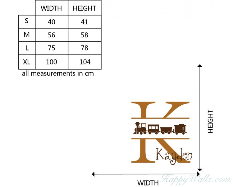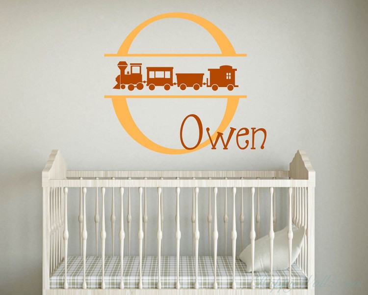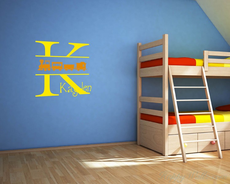 This wall decal is a customized name with the initial of your name in two colors. And across the initial letter, there is a lovely train.