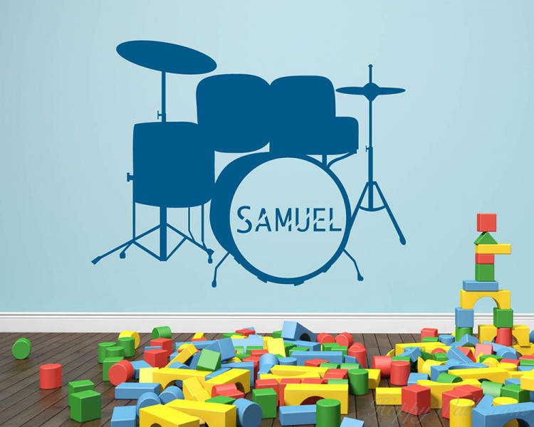 This wall decal is a drum kit vinyl decal that you may have your own name customized.