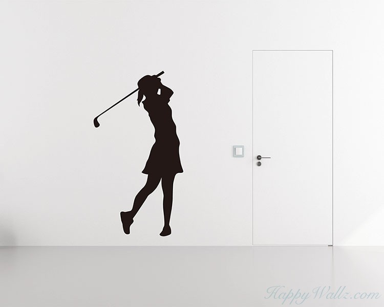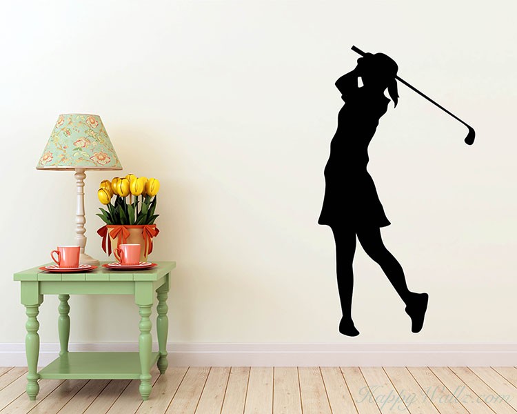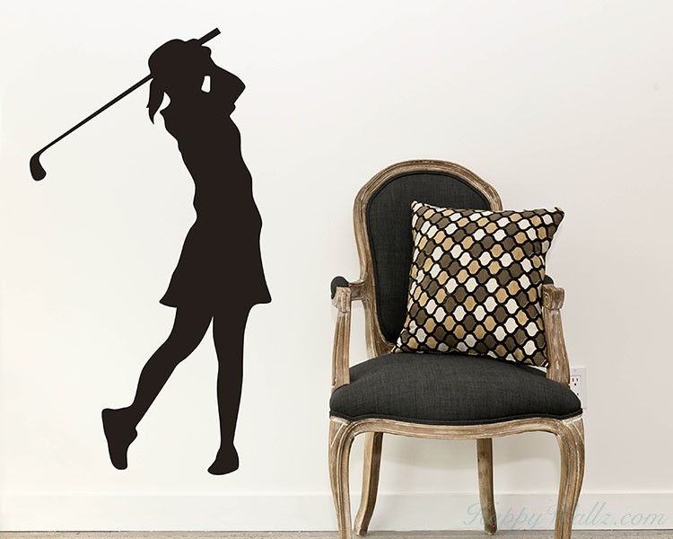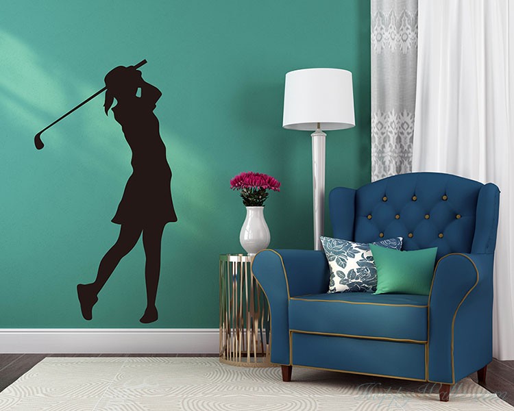 This wall decal is about a girl who is just playing golf. It is a kind of silhouette wall decal.