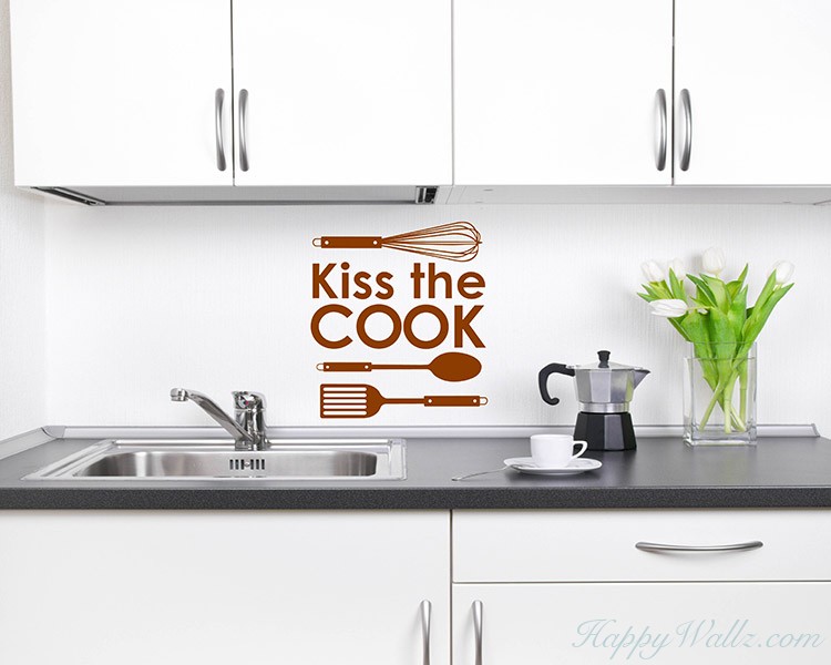 This wall decal is a kitchen quote wall decal with some cooking stuff.