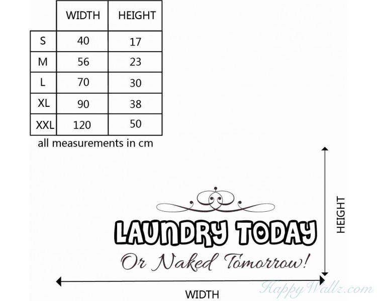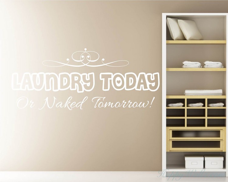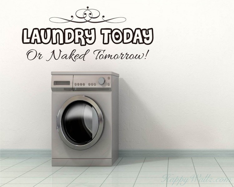 This wall decal is especially designed for laundry room with the saying laundry today or naked tomorrow!