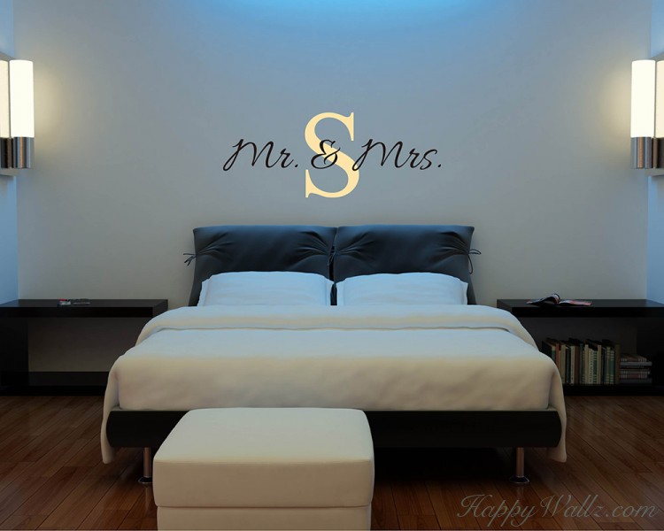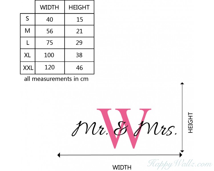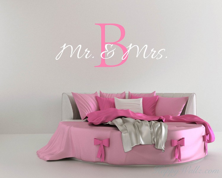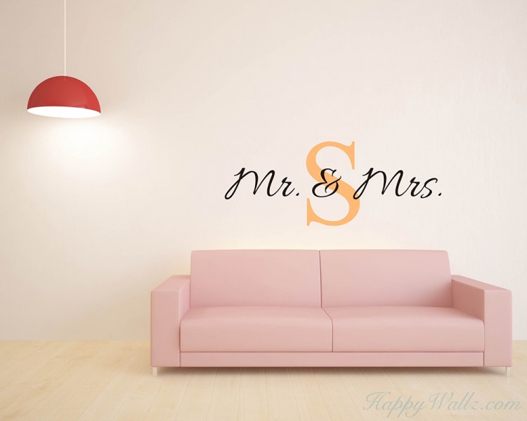 This wall decal is a customized name wall decal. You may have your own name's initial letter in different color to add in the middile of the quotes "Mr. & Mrs".