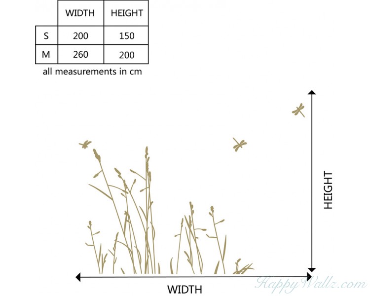 This wall decal is about reed in the wind with some dragonflies flying around.