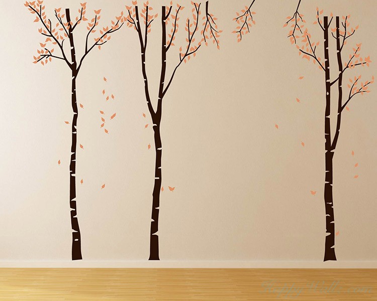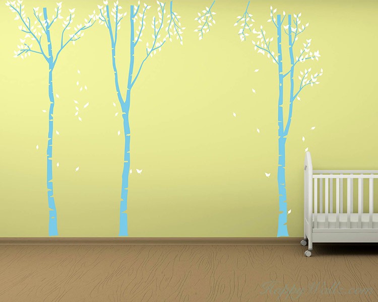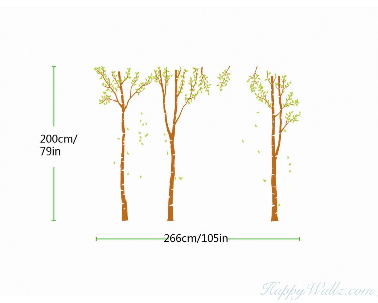 This wall decal is one set of 3 birch trees with a lot of leaves. You may paste this decal in your living room as well as you bedroom.