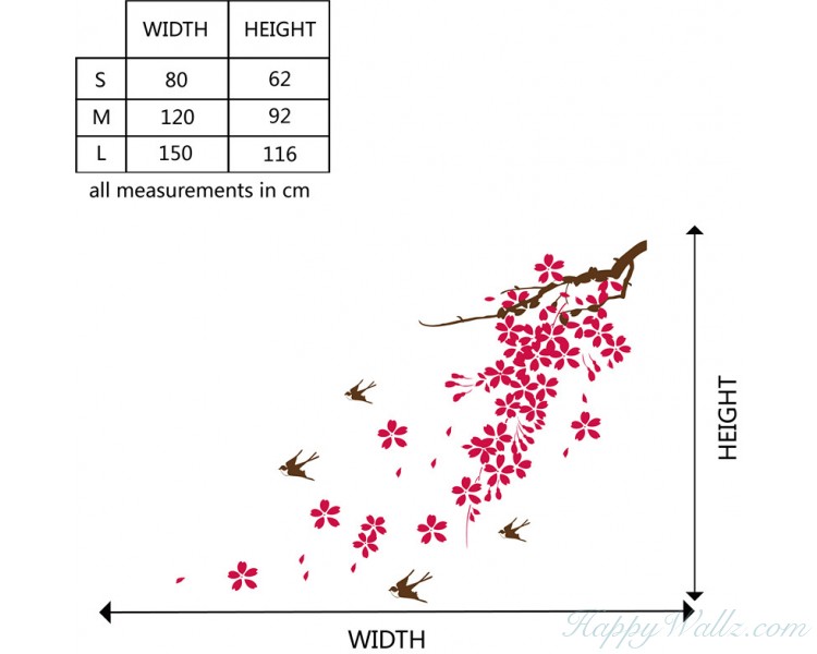 -Sakura Flowers with Branch Decal and Swallow Decals